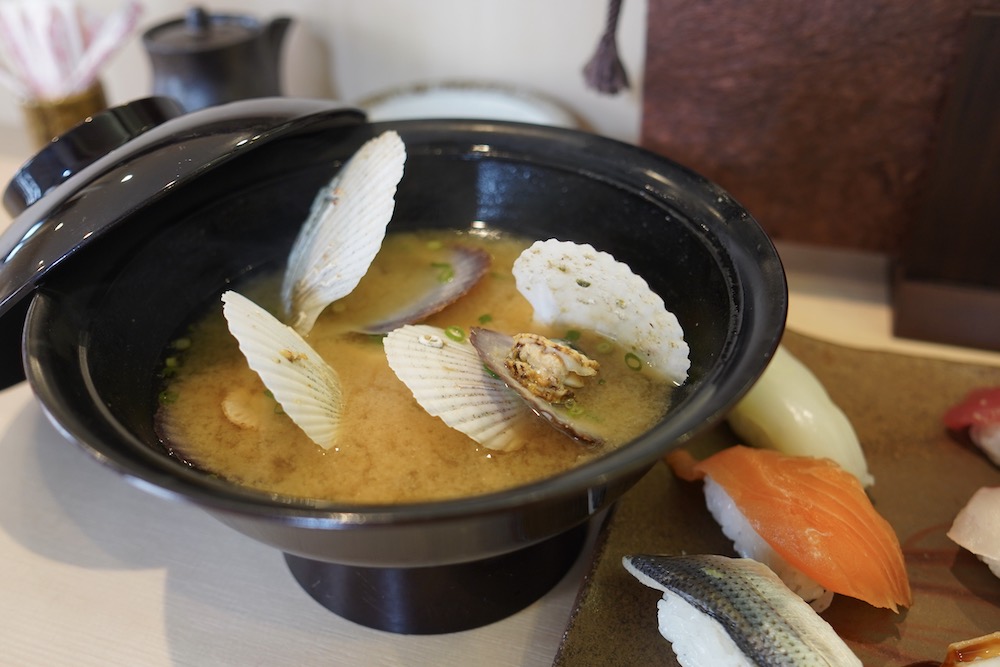 寿司10貫に玉子焼きとお味噌汁。