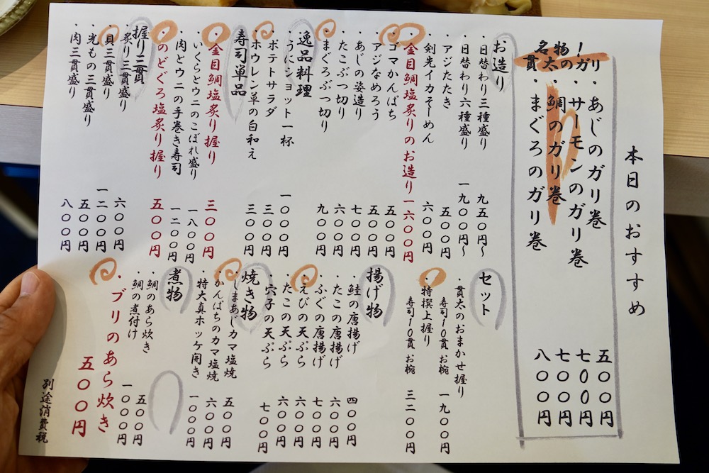 一貫の値段も書いてあって安心ですね〜。